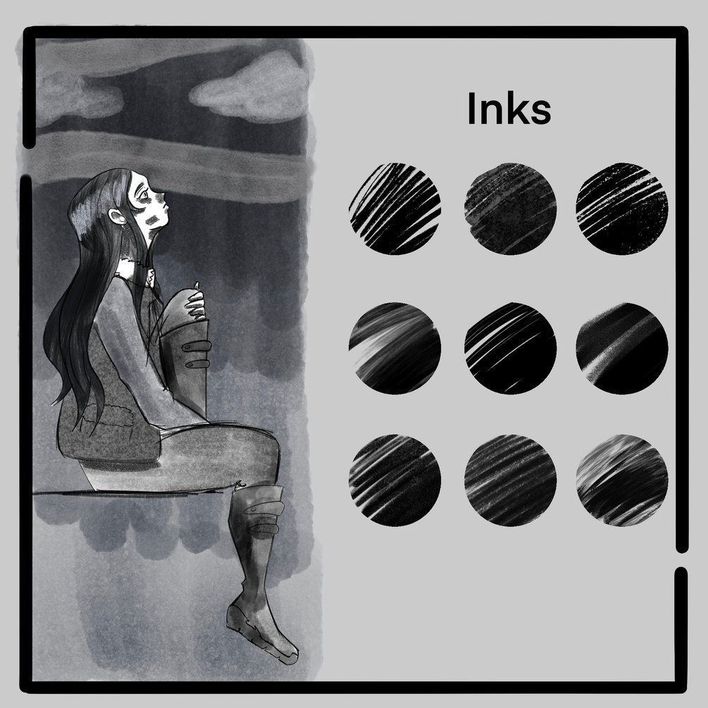 Bring your art to life with my brush set of 67 inks with smooth liners, broad brush strokes, and grit textures.